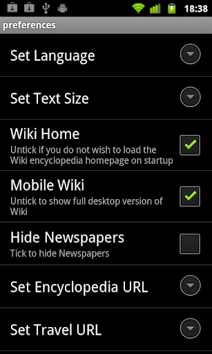 - The application remembers your Wikipedia language and text size preference.